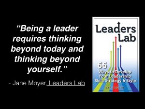 Jane Moyer heads talent development firm New Century Leadership LLC as executive coach, workshop leader, and speaker. She is author of Leaders Lab: 66 Ways to Develop Your Leadership Skill, Strategy, and Style.